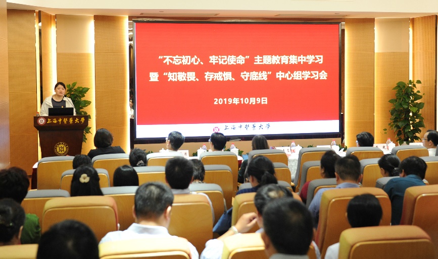 10月9日下午,伟德“不忘初心、牢记使命”主题教育集中学习暨“知敬畏、存戒惧、守底线”党委中心组学习会在行政中心举行。校党委常委、全体中层党员干部观看了廉政教育警示片,并分组开展交流研讨。