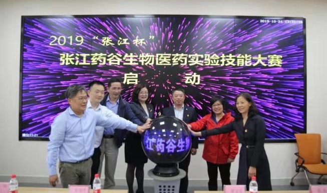 张江集团副总经济师、张江生物医药基地开发有限公司党总支书记、总经理楼琦首先介绍了张江生物医药基地产业发展情况与结对共建构想。伟德教学实验中心党支部书记可燕介绍与基地培训中心合作情况及技能大赛情况。随后,两人分别代表双方签署结对共建协议。与会领导共同为2019张江药谷实验技能大赛参赛企业代表授队旗,宣告本届大赛正式启动。