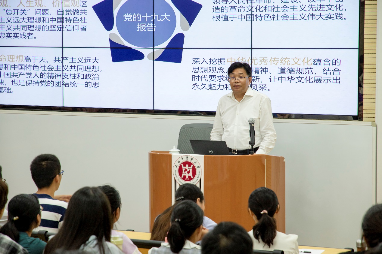发挥理论讲师团的专业优势。学院成立理论讲师团,为区域和学校基层党组织讲党课、送文化。学院专门开展“深入学习贯彻习近平新时代中国特色社会主义思想”集体备课,主动承担张江镇“不忘初心、牢记使命”主题教育基层支部书记培训的任务等。
