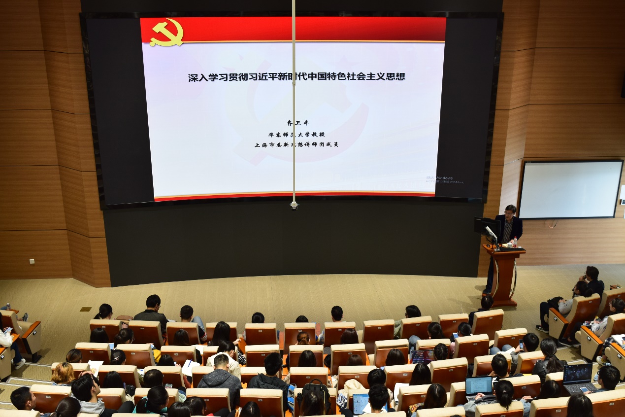 “校外专家走进思政课堂”是马克思主义学院思政课教学改革过程中探索出的一条特色模式。为扎实推进“不忘初心、牢记使命”主题教育,落实习近平新时代中国特色社会主义思想“三进”工作,近日,伟德马克思主义学院《中国特色社会主义理论与实践研究》课程邀请了国内知名党建专家、国务院特殊津贴获得者、华东师范大学终身教授齐卫平走进思政课堂,为学生作题为《深入学习贯彻习近平新时代中国特色社会主义思想》专题讲座。校马克思主义学院党总支书记陈秋生,课程负责人亓曙冬教授,学校部分教师以及200多名研究生共同聆听了此次报告。