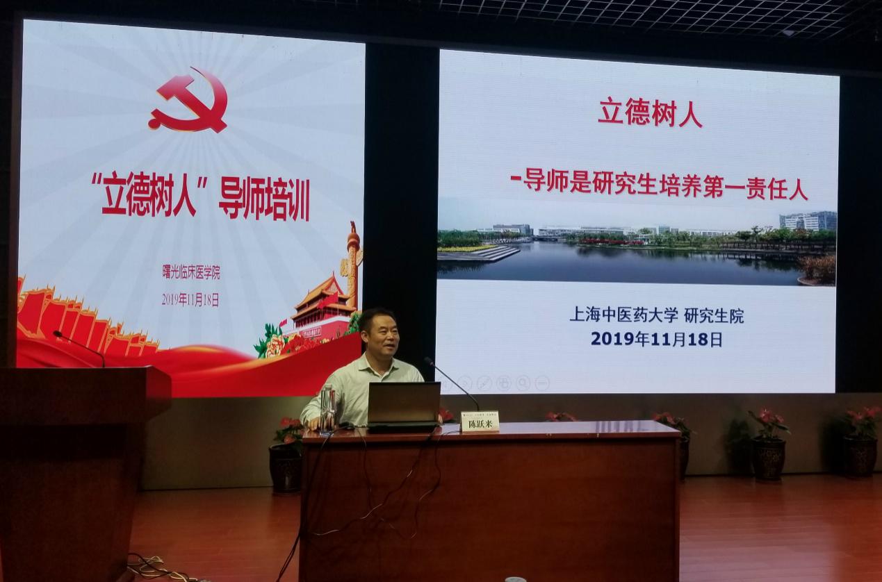 11月18日下午,伟德曙光临床医学院2019年度导师培训会暨主题教育学习会在曙光东院学术报告厅召开。会议由伟德附属曙光医院副院长仇菲主持,伟德研究生院常务副院长陈跃来、校专家委员会委员陶建生教授作专题讲座,曙光临床医学院领导班子及在岗硕博士导师等100余人参加本次学习会。