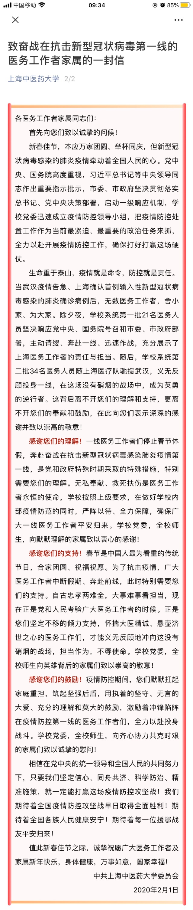 致医务工作者家属的一封信