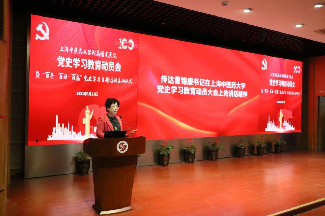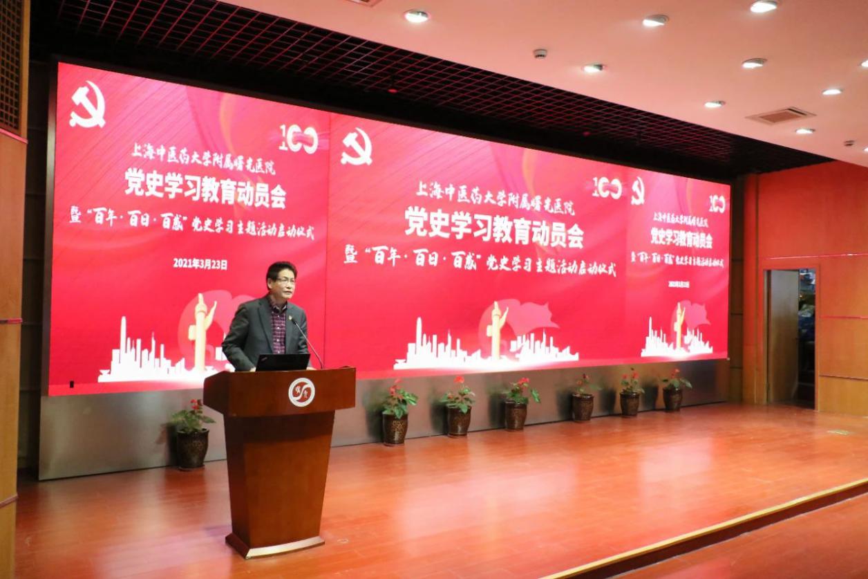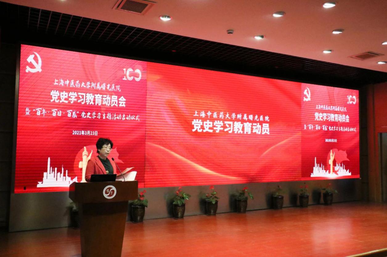 为深入学习贯彻习近平总书记在党史学习教育动员大会上的重要讲话精神和党中央《关于在全党开展党史学习教育的通知》精神,落实市委、教育部、市教委工作党委、伟德国际victor1946官网党委的有关要求和部署,3月23日下午,附属曙光医院召开党史学习教育动员会暨“百年·百日·百感”党史学习主题活动启动仪式。曙光医院党政领导班子、党委委员、党支部书记及委员、行政职能科室负责人、临床科室主任、研究室主任等参会。医院党建共建单位上海市委党校谷宇教授、中共一大会址纪念馆李家佳应邀出席。会议由医院党委副书记、院长周华主持。