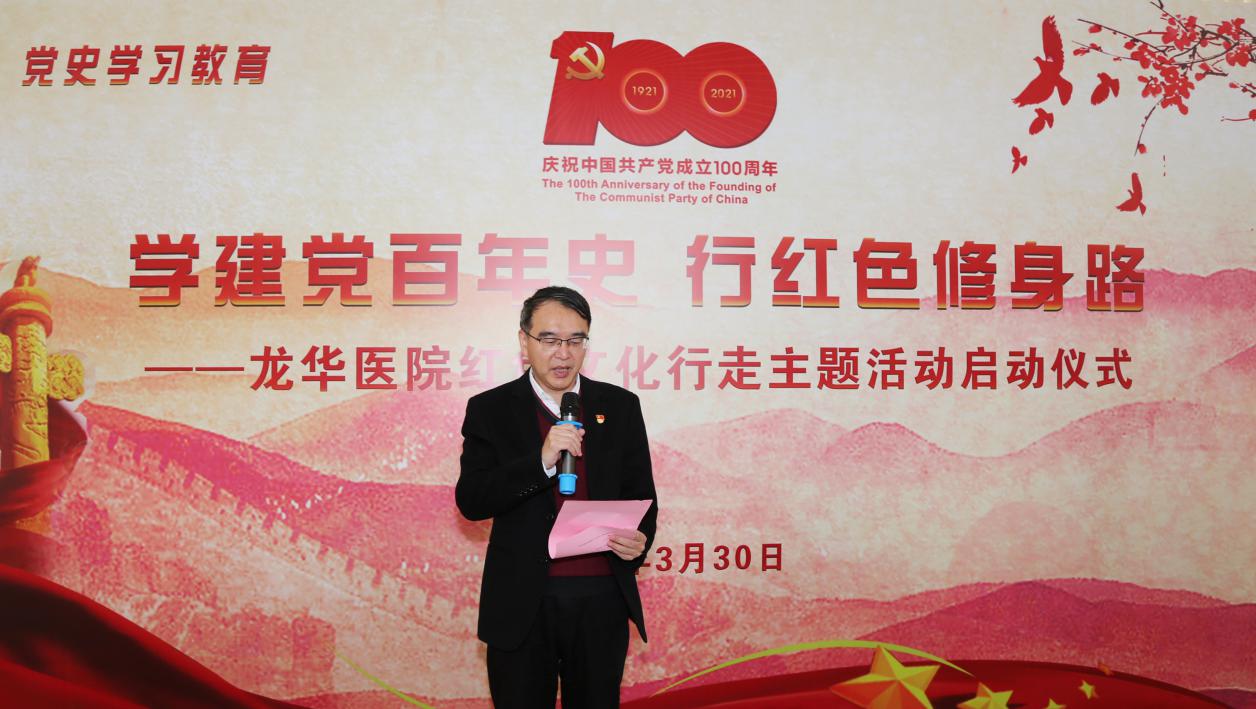 刘胜表示,百年征程波澜壮阔,百年初心历久弥坚,通过红色文化行走主题活动让广大党员、职工、学生从医院出发,重温党的光辉历程,有利于增强党史学习教育的吸引力和感染力,有利于凝聚起立足新时代、奋进新征程的强大力量,传承红色基因,追寻历史文脉,践行医者初心,为建设健康中国和促进中医药事业的可持续发展做出积极贡献。(龙华医院)