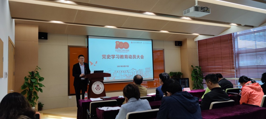 中药研究所副所长王长虹传达了习近平总书记在党史学习教育动员会上的重要讲话精神,以及市委、市教卫工作党委和学校党委党史学习教育动员会精神。