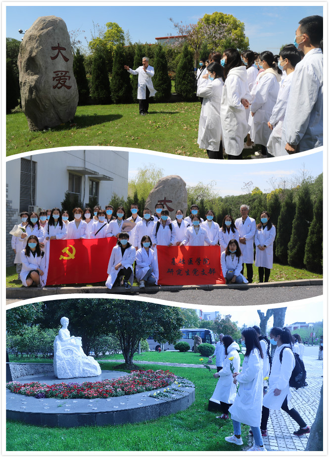 4月5日早晨,在学校大爱园,基础医学院解剖教研室张黎声为50多位基础医学院研究生、本科生上一堂特殊的主题党课,他以生命教育为主题向前来祭奠的学生们讲述伟德解剖楼的成立史、发展史,伟德校友陈海新的故事以及为党的医学事业发展捐献遗体的一位位大体老师的感人故事,勉励医学生们敬畏生命、珍惜生命,将来以一颗大爱之心为民行医。学生们纷纷在大爱园、陈海新雕塑前献花以表敬畏与崇敬之心,更立志做无愧于时代的人民健康守护者。