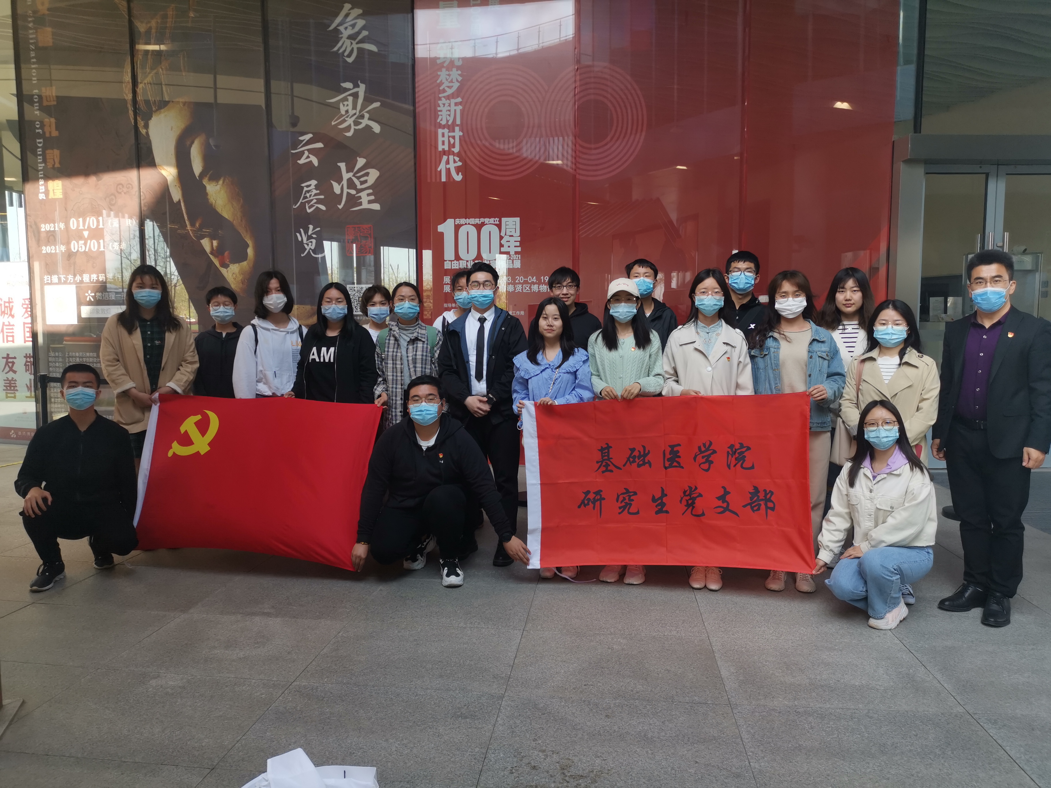 离开墓园后,学生们前往上海奉贤区博物馆参观“凝聚新力量 筑梦新时代”展,该展览创新党史学习模式,通过艺术的形式讲述建党百年辉煌历程中的奋斗故事,展现在中国共产党的领导下祖国日新月异的发展成就。通过百幅作品的展示观看,中医学子们纷纷表示,作为新时代的中医青年要坚定不移听党话、跟党走,建功新时代。