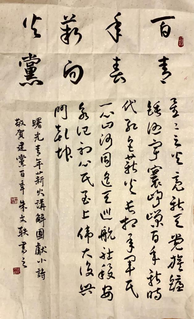 薪火青年讲解团成员朱文轶同志也用书法作品表达了对党的崇敬和热爱。
