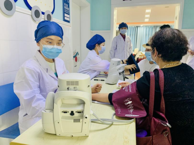 5月9日,正值母亲节,护理学院党总支积极开展“节日里的党史教育”,以“我为群众办实事”实践活动为抓手,庆祝建党百年。在吕伟波教授的带领下,党员师生组成“岐梦天使”志愿服务队,前往上海市浦东新区唐镇社区卫生服务中心开展“最美母亲节,天使送健康”护士节特别活动,为糖尿病患者免费测量血糖、血压,并有针对性地开展健康宣教,为群众解难题。