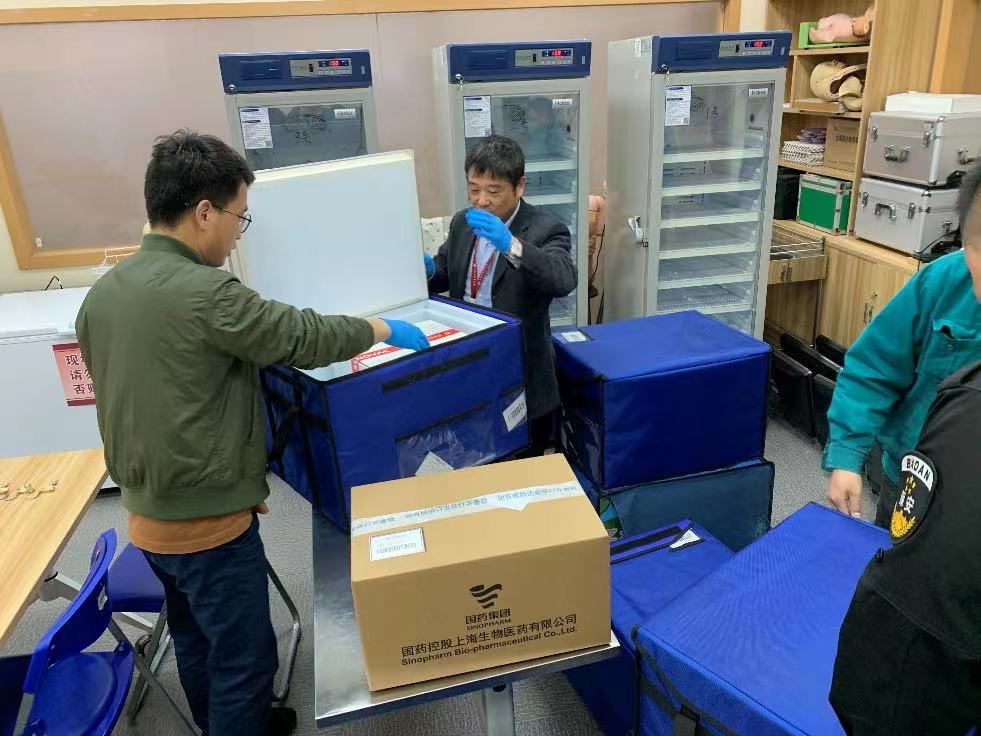 4月22日晚,因调配紧张,疫苗当日运送到校已近深夜,党员张红凯在后勤党总支书记金卫东带领下主动担起“接苗人”的重任,在校守候数小时等待接收疫苗,疫苗到达后与押运人员稳妥交接并逐一清点、放入冷柜、测温记录后才放心回家。