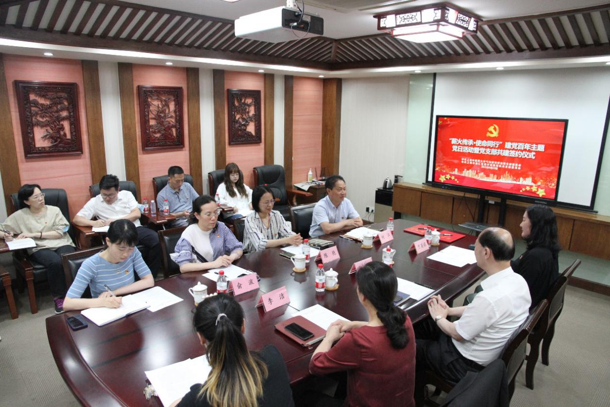为深入贯彻习近平新时代中国特色社会主义思想,全面落实从严治党要求,深入开展党史学习教育,不断加强党组织建设,6月23日下午,气功研究所在职党支部与徐汇区医疗保障局机关党支部举行“薪火传承·使命同行”建党百年主题党日暨党支部共建签约仪式。徐汇区医疗保障局党组书记、局长陈艳,局党组成员、副局长、机关党支部书记何江,局党组成员、医保中心主任俞波;气功研究所党总支书记、副所长何江,党总支副书记、所长李洁,党总支委员、在职党支部书记竺英祺出席,两支部共20余名党员参加本次活动。仪式由气功研究所何江主持。