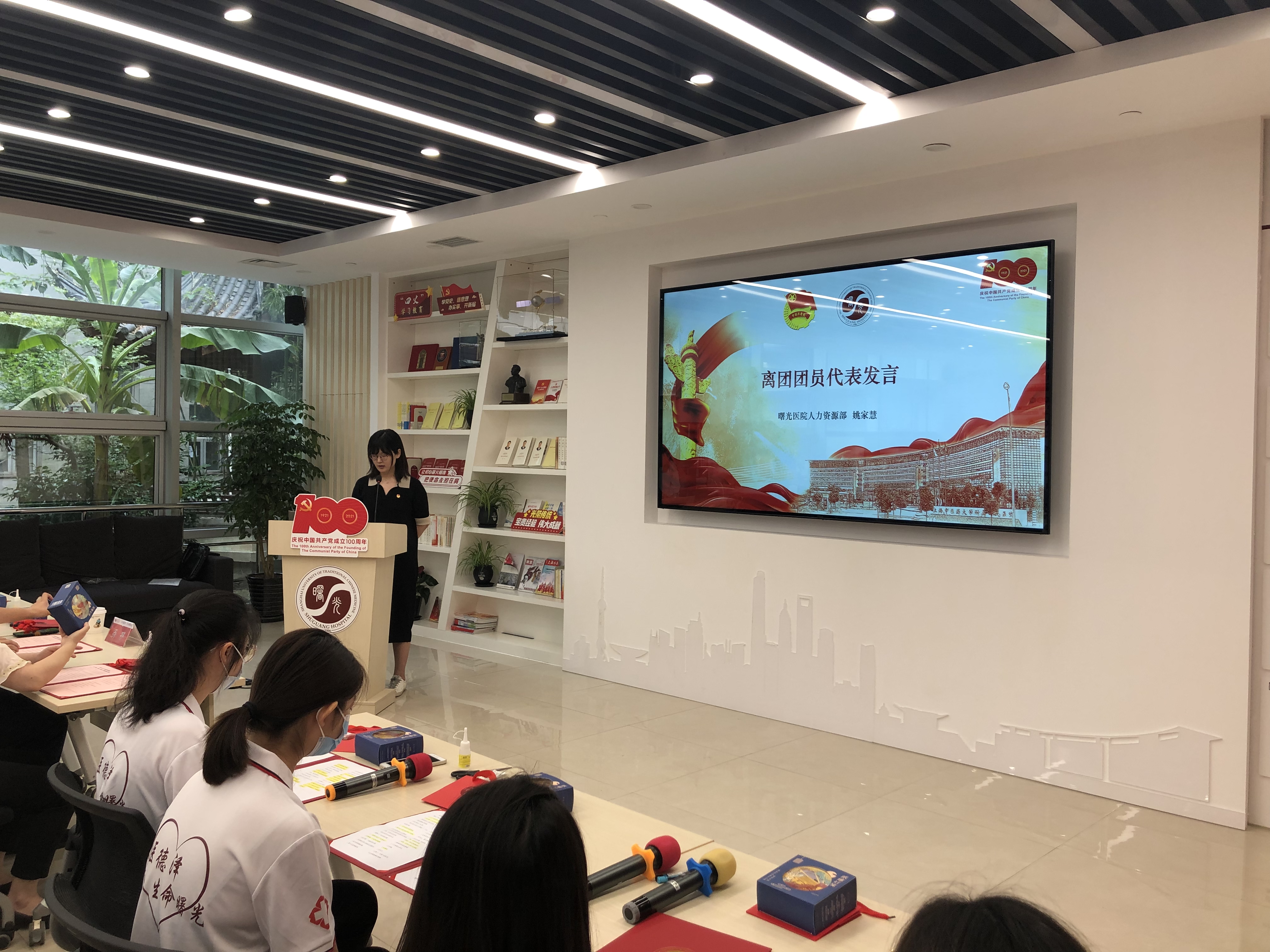 人力资源部姚家慧作为离团团员代表发言,她感谢团组织的培养和关心,表示在今后的工作和学习中将离团不离心,积极向党组织靠拢,在工作上精益求精,在政治上积极进取,在人生新起点上不断进步,不断取得新发展,为医院的建设献力,朝着更高的人生目标迈进。