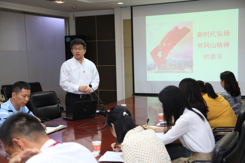 为促进基层党组织更好发展,从红色党史中汲取前进力量,10月13日,伟德副校长王拥军在行政中心312会议室为机关党委后勤党总支的全体党员开展以“新时代弘扬井冈山精神的要求”为主题的党史学习教育专题党课。后勤党总支副书记周强峰主持会议。