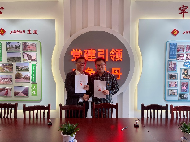 会上,崔龙涛和林永强共同签署党建共建协议书。通过支部间党员“联学”、群团“联动”、项目“联推”,强化共融共建,促进资源共享,实现合作共进。把共建成果体现在转型发展、队伍建设、人才培养、员工关爱、社会责任等各个方面,为推动朱泾镇牡丹村实现乡村振兴提供力量源泉,共同打造高质量一体化的城乡基层党建新格局。