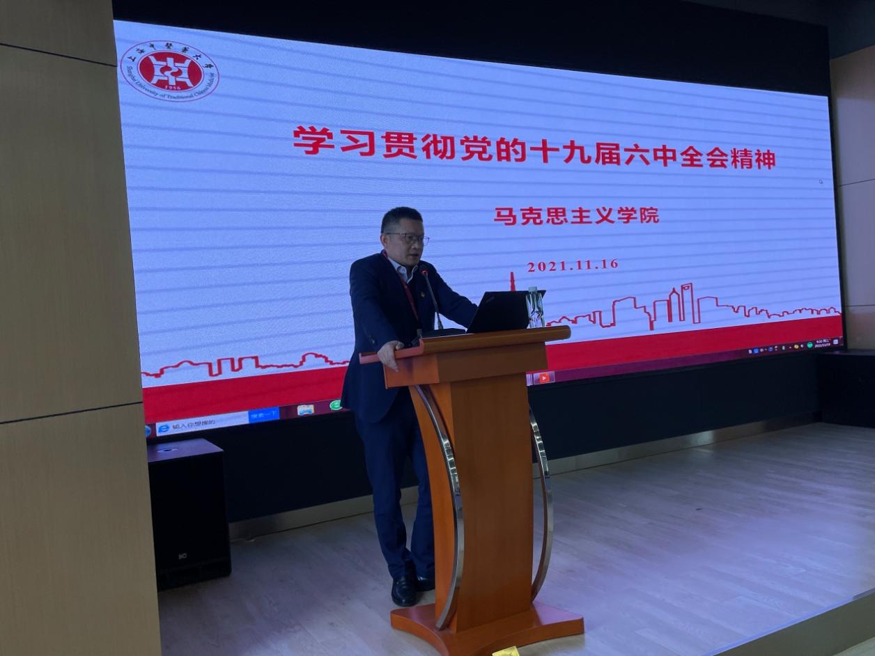 第一党支部陈荣武指出,为更好把握全会精神,一定要精读文本,决议对不同阶段思想成果分别用“创立”和“形成”来表述,这种用词的差异显示其所处发展阶段的区分。何兰萍重点谈了如何将决议中总结党百年奋斗经验中的“坚持胸怀天下”思想有机融入形势政策教学。