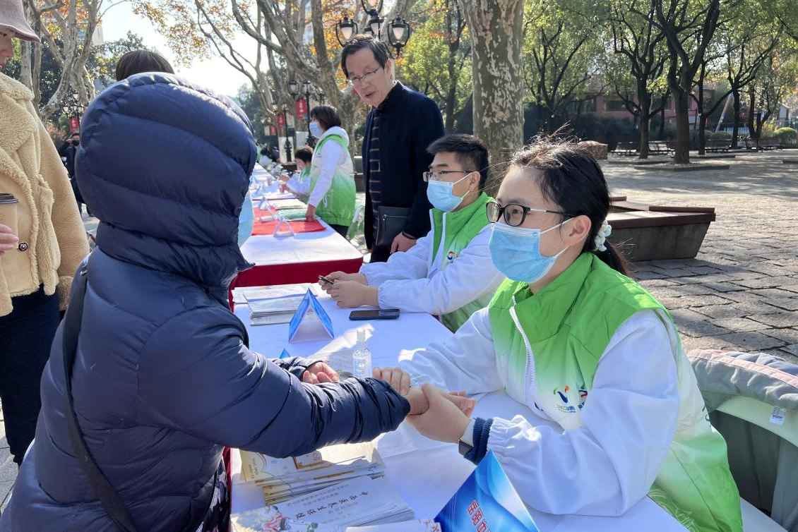 12月3日下午,推拿科医师李亚洲、皮肤科医师郭菲、老年病科医师姜凤依组成岳阳医院医务志愿者服务队,参加了在鲁迅公园举办的“虹口区12·5国际志愿者日现场志愿服务活动”。