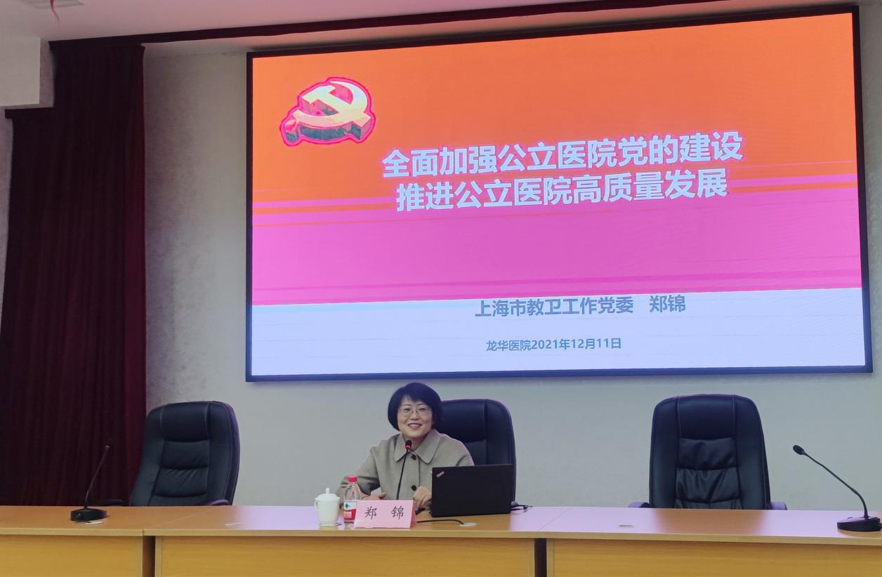 12月11日上午,上海市教育卫生工作党委一级巡视员郑锦带来《聚焦高质量创新发展 着力加强公立医院党的建设》专题辅导。她围绕习近平新时代中国特色社会主义思想、实施健康中国战略、加强公立医院党的建设文件要求,结合工作实际,总结3个核心内容,提出具体落实加强公立医院党的建设和创新公立医院党建工作的指导意见。