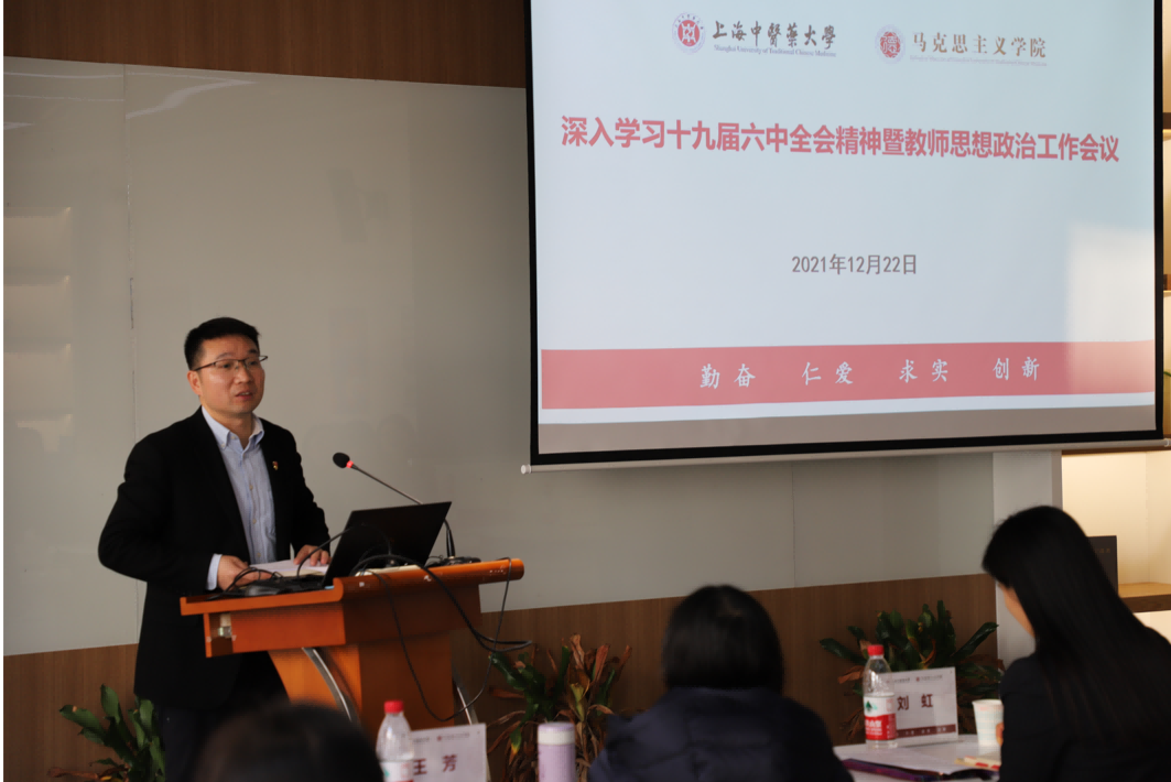 为深入学习十九届六中全会精神,贯彻党中央关于新时代高校教师思想政治工作的新部署和新要求,以及伟德教师思想政治工作会议要求,马克思主义学院于12月22日召开学习十九届六中全会精神暨教师思想政治工作会议。校党委教师工作部副部长刘虹、创新中药研究院联合党支部书记冯陈国、科技人文研究院第二党支部书记任宏丽以及马克思主义学院全体教师参加会议。
