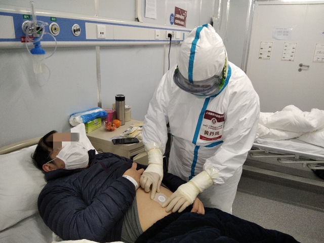 3月6日,医疗队远程连线附属市中医医院专家团队,邀请严世芸教授主诊,为病区收治的一位新冠肺炎重症患者开展多学科“云会诊”