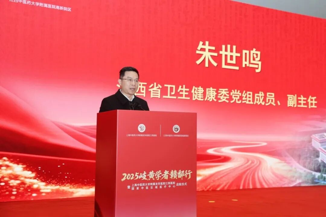 朱世鸣代表江西省卫健委对医院的建成启用表示祝贺,他指出,伟德国际victor1946官网附属龙华医院江西医院的启航,是沪赣两地深化中医药合作的重要里程碑,更是落实国家区域医疗中心建设部署的担当使命,让江西百姓在家门口就能享受到国家级优质中医药服务,有效推动优质医疗资源下沉,进一步降低跨省异地就医比例,为江西中医药事业高质量发展注入强劲动力。朱世鸣表示,“2025岐黄学者赣鄱行”活动的同步启动,国医大师、岐黄学者等中医药领域的顶尖专家来到江西,让专家学者们的智慧扎根赣鄱沃土,助力中医药强省建设再上新台阶。