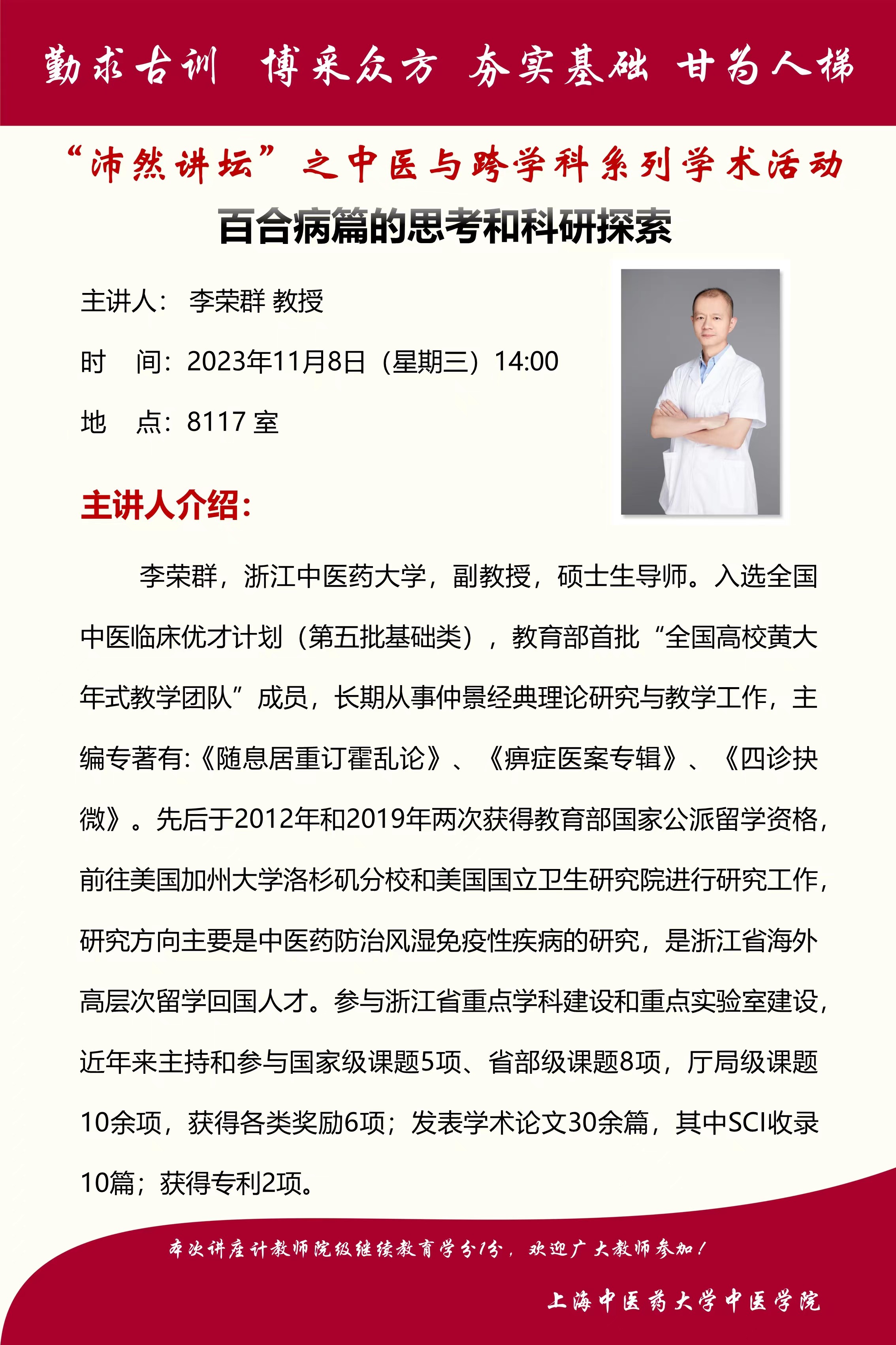 为探索中医理论与现代科学的深度融合,由伟德国际victor1946官网中医学院主办,上海市重大传染病和生物安全研究院中...
