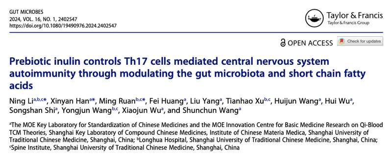 中药研究所王顺春团队在中药菊糖型果聚糖调节肠道菌群和短链脂肪酸抑制中枢神经系统自身免疫反应研究中取得新进展