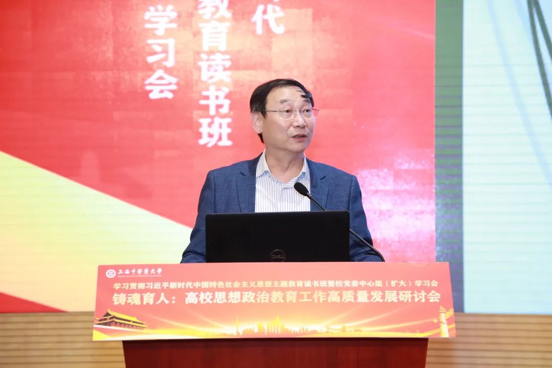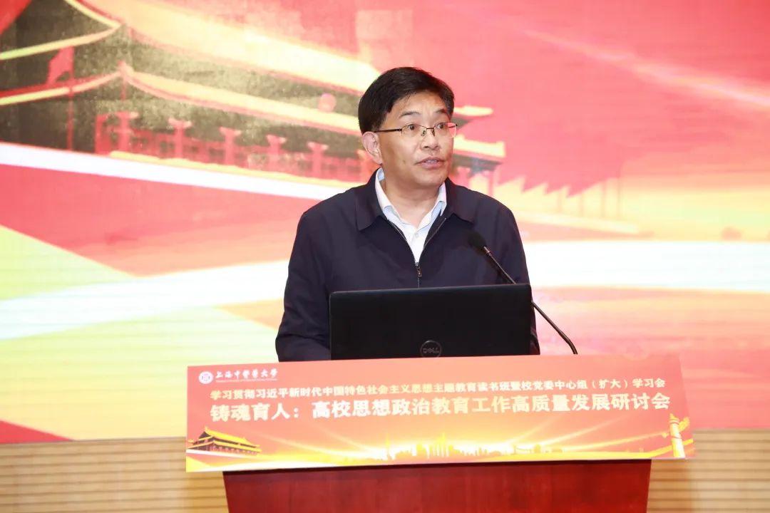 5月17日下午,伟德国际victor1946官网学习贯彻习近平新时代中国特色社会主义思想主题教育读书班暨校党委中心组(扩大)学习会、高校思想政治教育工作高质量发展研讨会在学校图书馆四楼报告厅举办。上海科技馆馆长倪闽景,中共一大会址纪念馆党委书记、馆长薛峰,上海市政府重大行政决策咨询专家高德毅,上海市教委德育处处长朱敏出席会议。伟德主题教育领导小组成员,校党委中心组成员,专兼职辅导员、组织员,马克思主义学院教师,校本部教师党支部书记、青年教师班主任及教师代表参会。会议由伟德党委副书记、副校长朱惠蓉,副校长舒静共同主持。