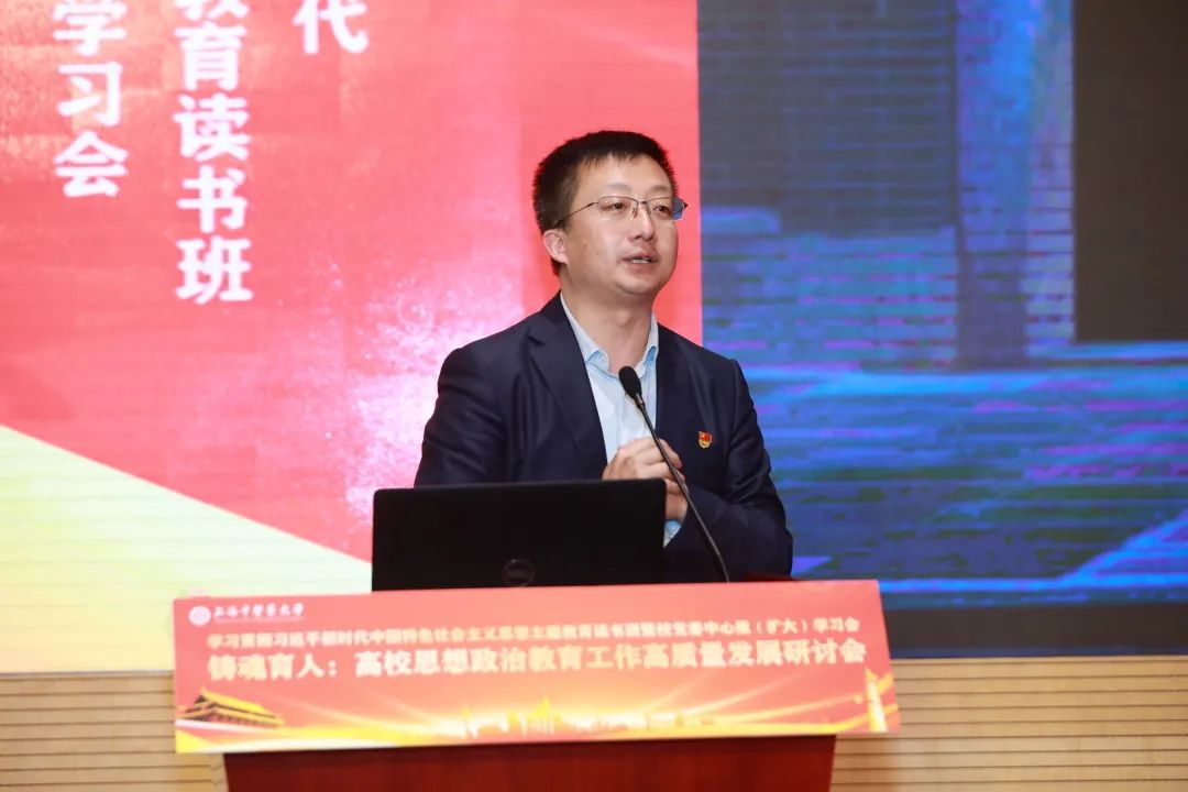 上海市教委德育处处长朱敏在致辞中强调,高校思想政治教育工作者,要以主题教育为契机,深入学习贯彻党的二十大精神,要注重学深悟透,推动理论学习往深里走,要注重知行合一,推动铸魂工程往实里走,要注重方法创新,推动思政工作往心里走。她介绍了上海市作为全国“三全育人”综合改革示范区,推动深化“三圈三全十育人”综合改革的创新做法,提出要聚焦重点任务,围绕大中小一体化、校内外一体化、知信行一体化,持续构建大思政工作格局,要用好“大课堂”,搭好“大平台”,建好“大师资”,站稳主阵地,讲好用好新时代“大思政课”。