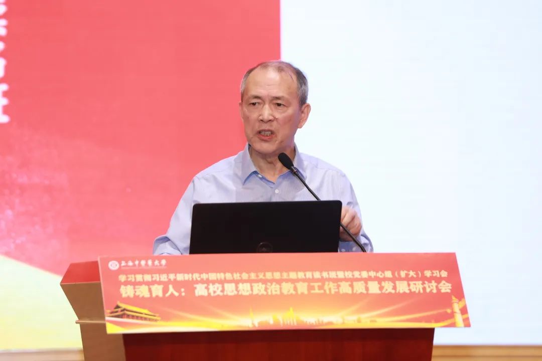 上海市政府重大行政决策咨询专家高德毅教授作题为“熔炉育人理念创新与系统建构——学校思政工作前沿问题探索”的主旨报告,他强调,要深刻理解高校思政工作的熔炉式时空建构,德育体系与内容衔接、课堂教学与网络空间横向贯通以及构建好学校、家庭、社会“三位一体”的育人架构。同时,做好德育内容的系统化设计与结构化布局,从政治认同、国家意识、文化自信与人格养成四方面着手建立顶层大思政内容体系。