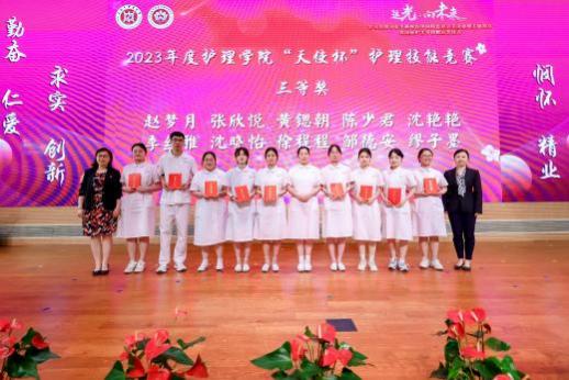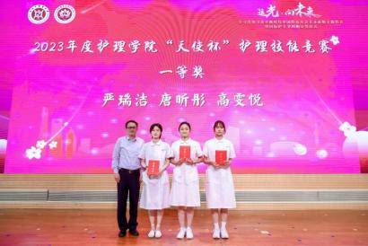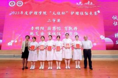 与会嘉宾为获得2023年护理学院“天使杯”护理技能大赛和伟德国际victor1946官网第一届护理创新大赛获奖师生颁奖。