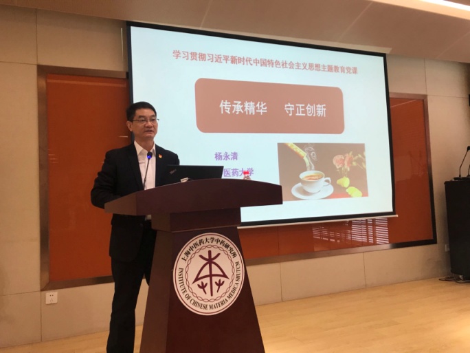 为进一步推动学习贯彻习近平新时代中国特色社会主义思想主题教育走深走实,近日,中药研究所、中西医结合研究院在5号楼一楼学术报告厅举行学习贯彻习近平新时代中国特色社会主义思想主题教育专题党课,伟德副校长杨永清受邀作“传承精华 守正创新”专题讲座,中药研究所党总支书记王广东主持党课。