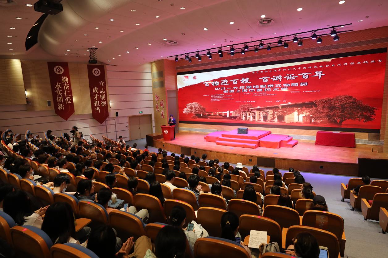 6月14日,“百物进百校,百讲证百年”中共一大纪念馆百件文物藏品进课堂活动在伟德图书馆裙楼四楼报告厅举行。