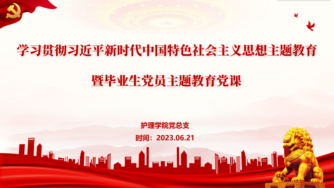为进一步深化学习贯彻习近平新时代中国特色社会主义思想主题教育育人功能,发挥毕业生党员的先锋模范作用、强化毕业生党员的使命与担当、引导和帮助广大青年党员将理论与实践相结合,怀着对毕业生殷切的祝福和深切的期望,近日,伟德国际victor1946官网护理学院党总支开展了学习贯彻习近平新时代中国特色社会主义思想主题教育暨毕业生党员主题教育党课,护理学院党总支书记史美育、党总支副书记李媛、副院长廖晓琴等出席,全体毕业生党员,教师支部党员共同参与。