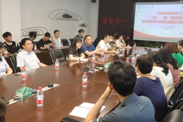 同济大学交通运输工程学院教工第一党支部书记朱兴一主持活动,副院长肖军华致辞。他介绍了学院的党建工作、人才培养、学科建设等基本情况。何建成介绍了本支部的基本情况,双方就推进跨学科、跨学校交流,育人新方法、党建新路径展开了研讨。