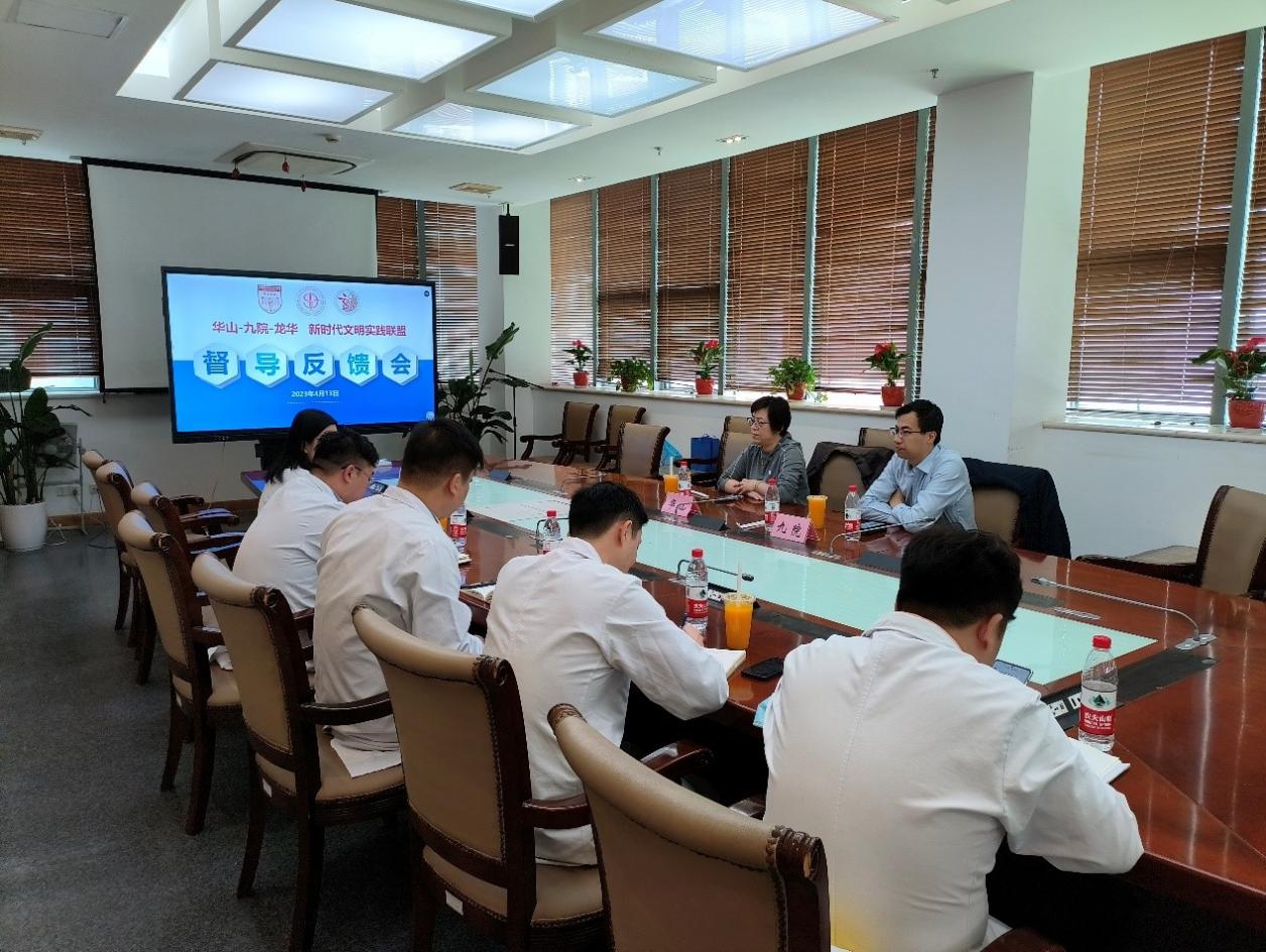 2023年一季度开始,华山医院、市第九人民医院、龙华医院联合成立新时代文明实践中心联盟,通过“文明创建联抓”“实践活动联办”“优势资源联享”“重点工作联促”,不断推进医疗服务改善与创新,提升患者就医体验。截至第二季度,已开展巡查反馈会三场。主题涉及全国文明城区建设、门诊区域就诊流程及服务、多院区细节服务协同管理等。