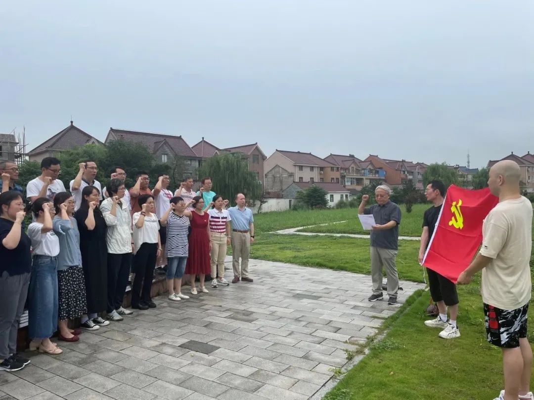 随后党员们前往聚源桥村红色文化展览馆。这是解放上海战役打响第一枪的地方。先烈们为上海的解放壮烈牺牲。通过回望战争历史,希望党员们能够更加珍惜今天的和平与幸福。参观结束后,党员们在纪念雕塑前重温了入党誓词。流淌着红色血脉的聚源桥村也是我国乡村振兴发展的示范村,近年已成功完成农业主业的转型发展,其中的果蔬、花卉香料、多肉植物园多个品种争奇斗艳、芬芳四溢,现场的直播平台销售火热。党员们切实感受到了在党的领导下,现代乡村的沧桑巨变和迅速发展。